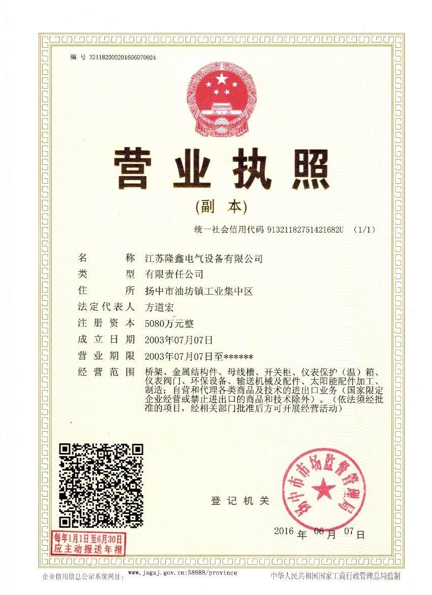 江蘇隆鑫電氣設(shè)備有限公司(原揚中市隆鑫電器設(shè)備有限公司)位于風(fēng)景秀麗的江南古城 ---- 鎮(zhèn)江東部揚子江畔,水陸交通便利。 本公司是中石化網(wǎng)絡(luò)成員企業(yè),是揚中橋架企業(yè),工業(yè)管道閥門、儀表管配件、母線槽、匯線橋架、玻璃鋼制品的專業(yè)生產(chǎn)廠家。 我公司一貫以經(jīng)營以管理為保證、以科技進步為動力,使產(chǎn)品的市場占有率不斷提高,公司正持續(xù)、穩(wěn)步、健康地向前發(fā)展,秉循“創(chuàng)造完美、服務(wù)用戶、奉獻社會”的經(jīng)營觀念,本公司生產(chǎn)的儀表管件及閥門系列產(chǎn)品、母線槽、電纜橋架幾乎覆蓋全國31個省、市、自治區(qū)的化工、冶金、交通、輕...